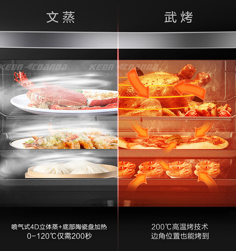 更值得一提的是,科恩智能蒸烤消一體集成灶采用4D立體直噴蒸烤模式,四面受熱更均勻,多種蒸烤模式隨心選,廣域控溫,加熱速度一提再提,熱風對流立體烘烤色香味俱全,全面喚醒食材鮮美營養(yǎng)。雙聚能環(huán)設計,使熱量集中不分散,熱效率更高,烹飪菜肴更美味,更節(jié)能!