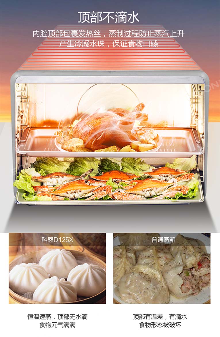 集成灶十大品牌、廚電行業(yè)十大品牌科恩集成灶內(nèi)置十大烹飪模式,溫度、火候、時間自由掌控,廚房小白輕松蒸出美味健康食物。另外,“蒸”就怕的就是有水進(jìn)入到食物里面去了,那樣的話食物就會變味,科恩集成灶就不會發(fā)生這樣的情況。4D噴氣式蒸烤,頂部也不漏水,蒸出來的食物就是原汁原味,口感更是能夠促動你的味蕾。