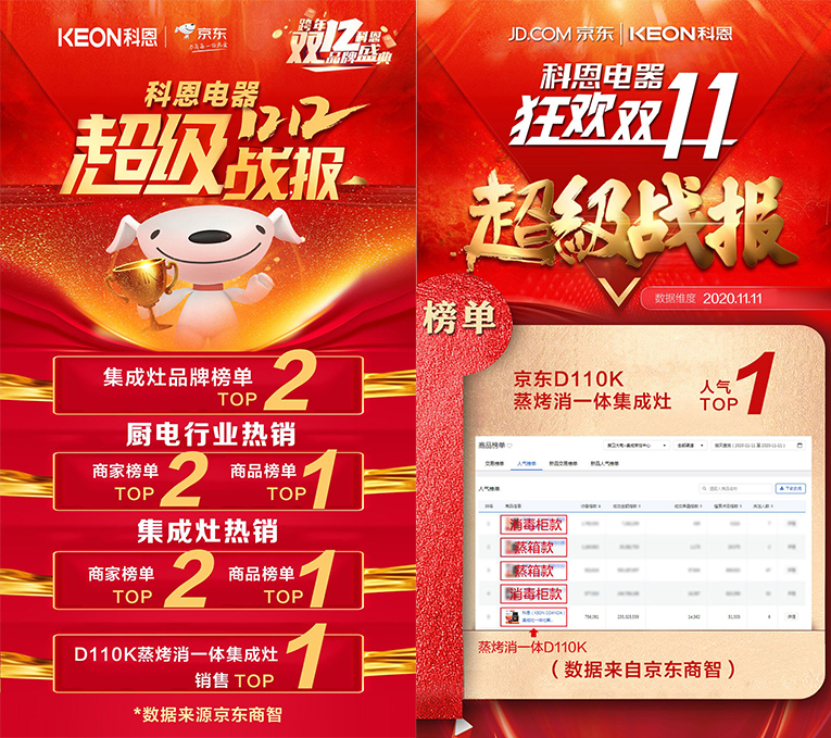科恩集成灶從2009年誕生第一臺煙機以來,一直嚴格執(zhí)行國家質(zhì)量、環(huán)境管理體系標準,在材料選擇上嚴格把控,在產(chǎn)品質(zhì)量把關(guān)上更是超越國家標準。科恩集成智慧廚房京東平臺入駐以來,多產(chǎn)品入倉,銷售額更是喜人,在去年雙11雙12大促中,集成灶十大品牌、廚電行業(yè)十大品牌科恩集成灶更是以優(yōu)異成績呈現(xiàn)出良好的發(fā)展勢頭,雙十一奪獲廚衛(wèi)大電新品交易榜單Top1、D110K蒸烤消集成灶單品第1、集成灶新品交易榜單Top1、集成灶新品人氣榜單Top1;雙十二奪獲廚衛(wèi)大電行業(yè)熱銷商家榜單Top2、廚衛(wèi)大電行業(yè)熱銷商品榜單Top1、集成灶熱銷商家榜單Top2、集成灶熱銷商品榜單Top1、集成灶品牌榜單Top2、D110K蒸烤消一體集成灶銷售Top1,憑借優(yōu)異成績再攀高峰!此外,在剛剛結(jié)束的燃爆紅六月618開門紅活動中,科恩官方旗艦店京東直播在線人數(shù)再創(chuàng)新高,開門紅單場銷售額超百萬,超預(yù)期的銷售佳績讓科恩成為京東直播的一匹黑馬。