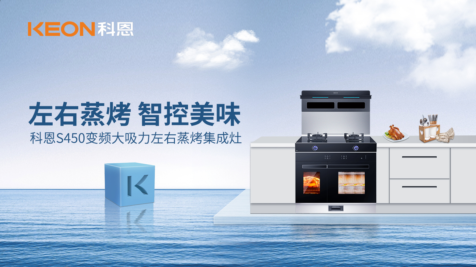 科恩S450左右蒸烤智能語音集成灶全面開啟左烤右蒸新時(shí)代,無論你是廚房大廚還是廚房小白,都能一鍵定制蒸烤美食,讓美食如約而至!